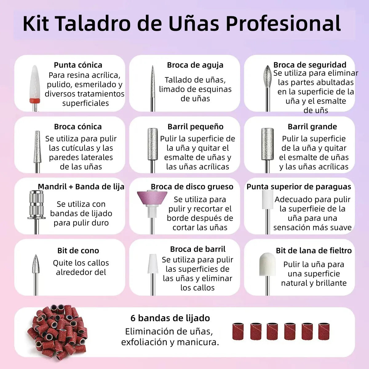 Incluye 12 brocas de metal y 6 bandas de lijado para diversas aplicaciones.